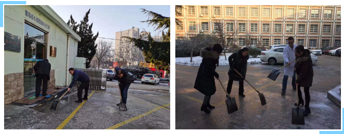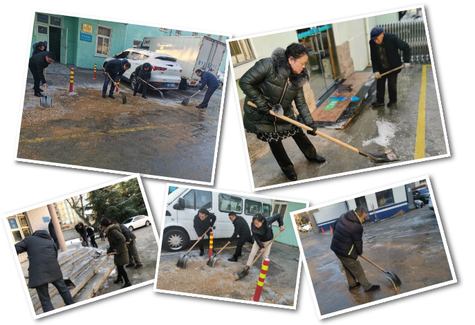 大家克服天气寒冷、路滑等困难,干劲十足,齐心协力将医院大门入口、主干道、门诊楼前、心理咨询中心入口等多处结冰路面铲除干净,保障了患者和职工的安全出行。