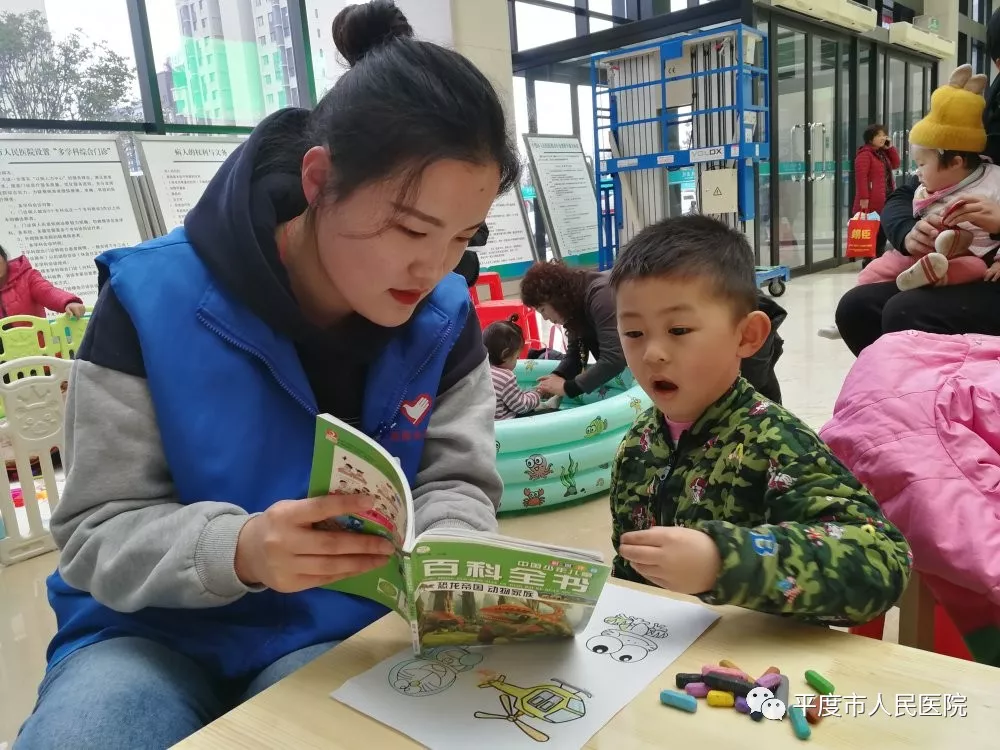 入冬以来,医院就诊的患儿呈现井喷态势。医院儿科诊区变得拥挤不堪,孩子的哭闹,家长的焦虑,让等候就诊的人群也变得躁动。为了缓解就诊过程中孩子们的恐惧心理,医院“平医蓝马甲”志愿服务团队在儿科门诊设立了“活动的画室”、“小小娱乐场”志愿服务项目,候诊期间,患儿们在志愿者的陪同下在休闲区开心地玩耍,阅读卡通书籍,同时在志愿者的讲解示范下学习了诸如正确洗手、正确佩戴口罩等科学防病知识。寓教于乐的同时,患儿和家长的焦躁情绪也得到极大缓解,收到患儿及家长的点赞无数。