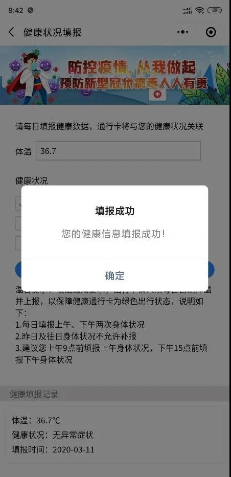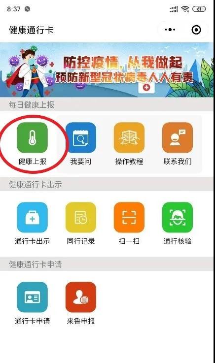 点击“健康上报”(此后每日均须进行该步操作,否则健康码会呈现黄色)。