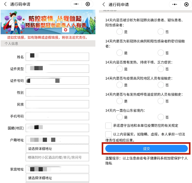 二、山东省电子健康通行码使用要求