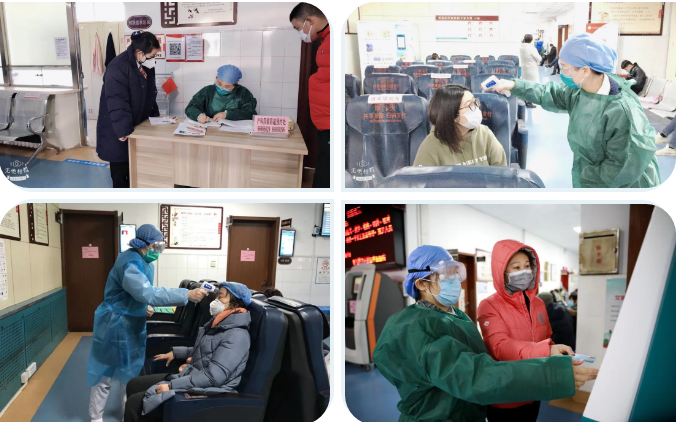 “莲子心”服务队严格执行“三关一询问”:把好门诊就诊患者体温关、做好门诊公用物品消毒关、做好患者佩戴口罩进入门诊关,做好就诊患者病史询问,用真心守护患者安全。