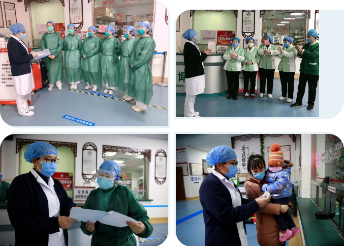 疫情防控期间,“莲子心”服务队成为门诊就诊患者健康知识的宣传者和心理疏导者,她们耐心指导患者如何正确佩戴口罩、教授如何开展六步洗手法、开展新型冠状病毒感染肺炎疫情防控健康知识宣教、对就诊患者进行心理疏导,减轻患者疫情防控期间就诊焦虑,得到患者好评!