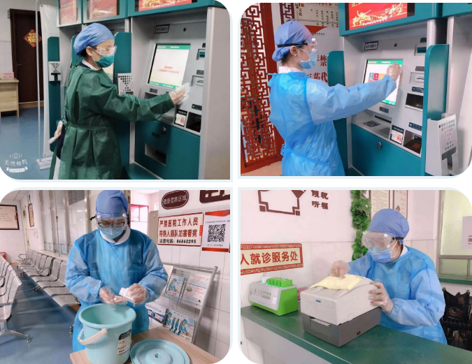 为使患者就诊更加舒心,“莲子心”服务队加强内部防控知识培训、督导门诊保洁人员做好消毒防控和卫生清洁工作,每天对门诊大厅排椅,门把手,自助机,墙面等物体表面消毒擦拭,从细节做起,保证患者在干净、整洁、舒心的环境中就诊。