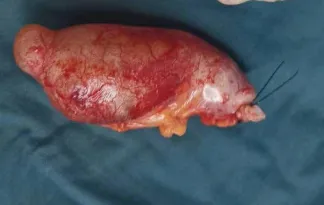在完善流行病调查及心肺功能和肿瘤标志物等实验室检查后,对刘大叔进行了手术治疗。术中探查发现阑尾远端肿物,约11X5X5cm大小,周围组织轻度粘连,囊性。在保证肿物未破损,囊液未溢出的前提下,完整切除了肿物,快速病理回报:阑尾低级别粘液性肿瘤,囊液无细胞。