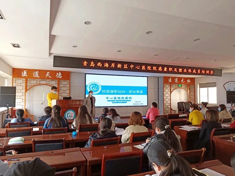 为加强医院感染管理,有效控制院内交叉感染的发生,强化医务人员手卫生意识,提高手卫生依从性及医务人员对院感控制的思想认识,规范工作流程,确保医院医疗质量安全,2020年4月17日,青岛西海岸新区中心医院组织全院院感兼职医生/护士及健共体成员单位人员在行政楼4楼开展了第一季度院感质控汇报及院感防控知识讲座。本次知识讲座由院感科副主任赵琼主持。