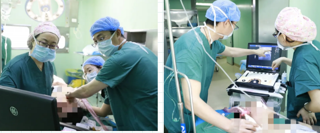 只见手术室麻醉医师手握探头,为耿女士在超声引导下进行了臂丛神经阻滞,全程仅用了不到10分钟就完成了精准麻醉。这项“神操作”为耿女士提供了理想的麻醉效果,减轻了痛苦,避免了神经和血管的损伤,回访时耿女士表示手术时一点也不疼,对麻醉效果特别满意!