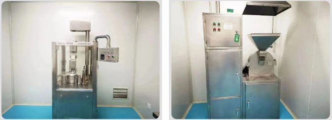 中药制剂室严格按照GPP标准建设,建筑面积1024㎡,洁净配制区10万级,菌检室万级,设有制剂区、药检区、仓储区、办公区等四大功能区。设备配置齐全,具有多功能提取机组、夹层锅、沸腾干燥制粒机、烘干箱、颗粒自动包装机、全自动胶囊填充机、粉碎机、超微粉碎机、制丸机等近五十台制剂生产、药检设备。可实现合剂、硬胶囊剂、颗粒剂、丸剂等剂型的生产和检验。