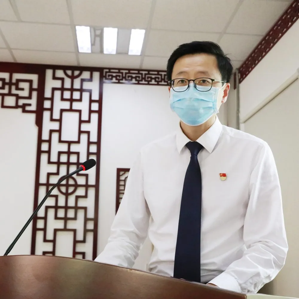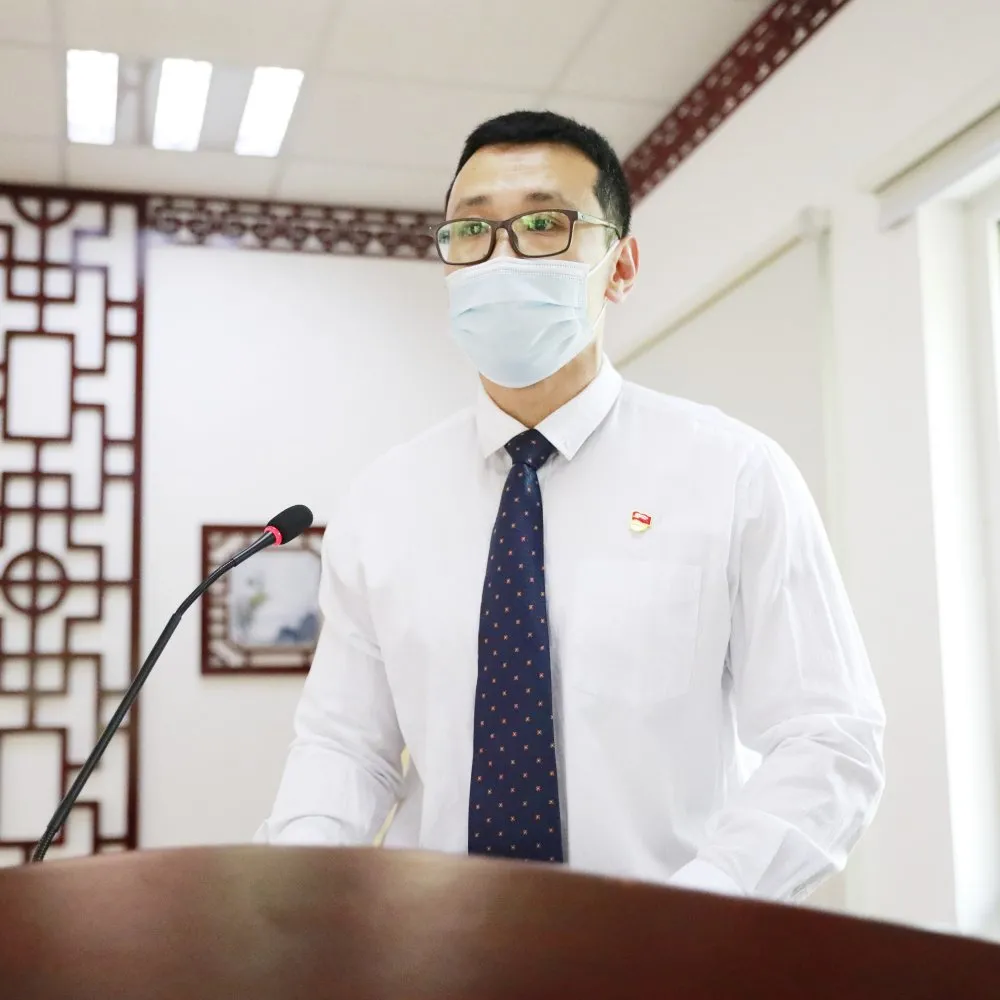 团委副书记郝立鹏宣读《共青团西海岸新区卫生健康局委员会关于同意召开共青团青岛市黄岛区中医医院委员会换届选举大会的批复》