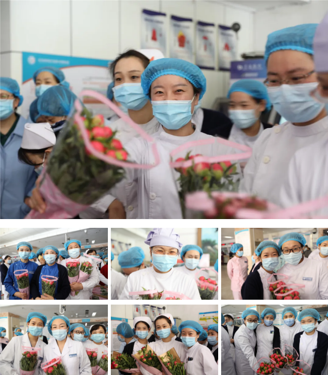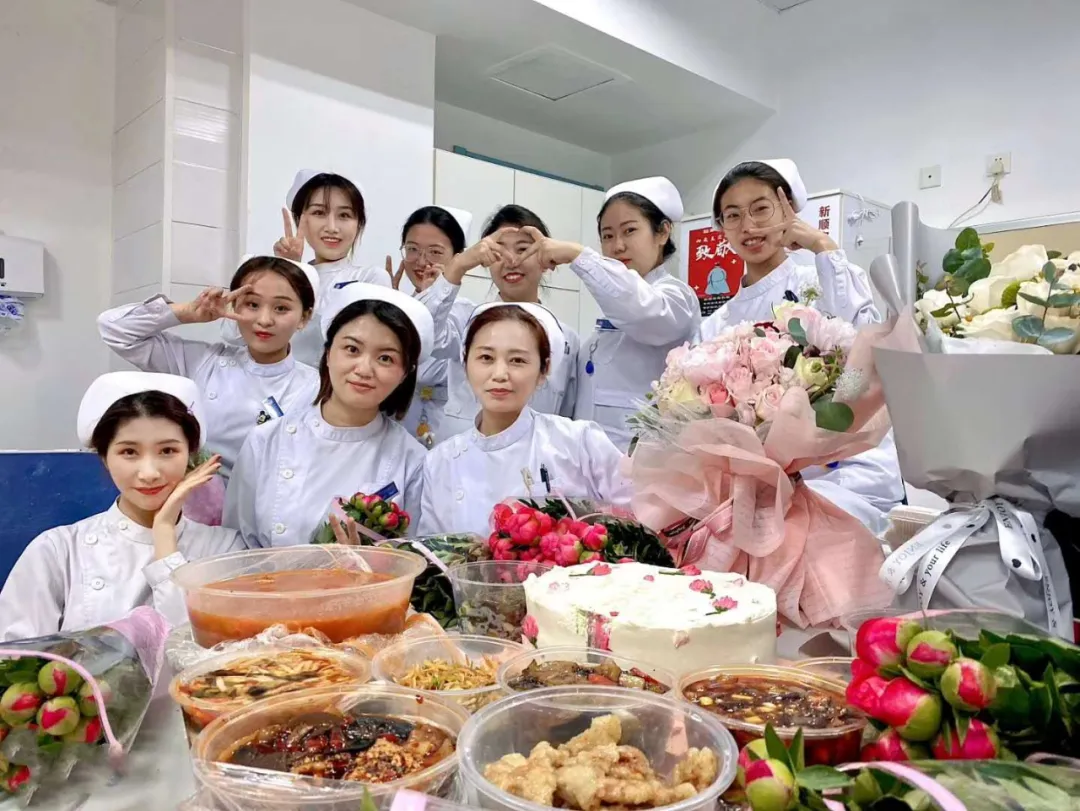 美丽的鲜花,点亮了一张张美丽的笑脸,护士姐妹兄弟们非常感谢院领导对大家的节日祝福,纷纷与领导们合影留念,定格幸福的瞬间,医院里充满了节日的喜庆气氛。