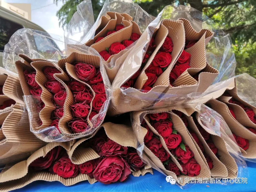 2020年5月11日,天有些阴雨蒙蒙,然而,一束束娇艳欲滴的红玫瑰,却似一丛丛耀眼的阳光,把每个护士心里照得暖暖的。送玫瑰的人,并未留下姓名住址,我们也不知道她是谁?只知道代发玫瑰花的人,是青岛西海岸新区中心医院口腔科门诊护士长丁桂伟。