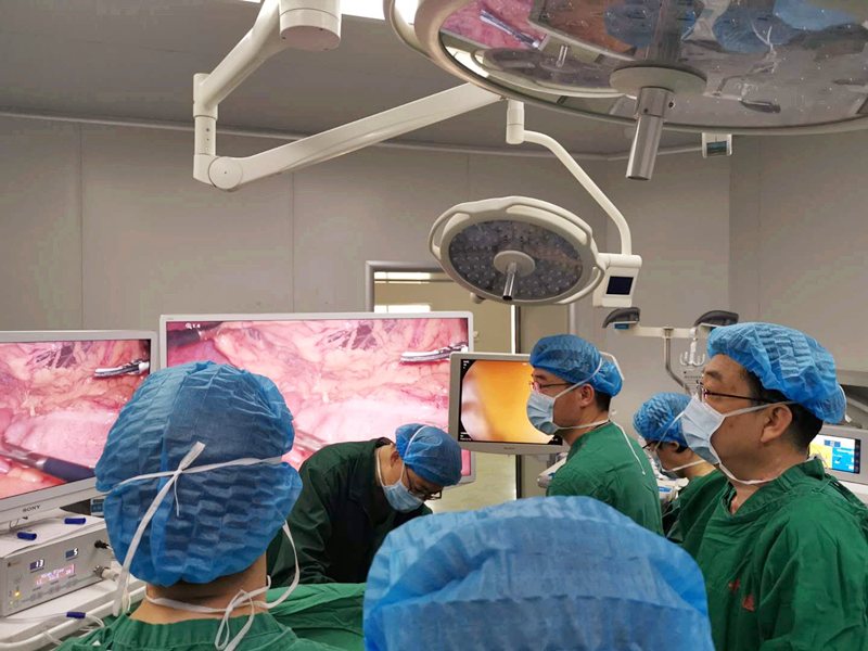 普外一科团队正在进行腹腔镜微创消化道肿瘤根治术