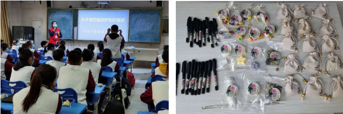 讲座结束后,门诊部主任殷雪华采用提问抢答的方式,对秋冬季节疾病防控知识、七步洗手法、如何正确佩戴口罩等重点知识进行了现场提问,学生们踊跃举手发言,现场气氛热烈。殷雪华主任为回答正确的同学颁发了中药防感香囊、减压神器、中性笔等健康礼品。