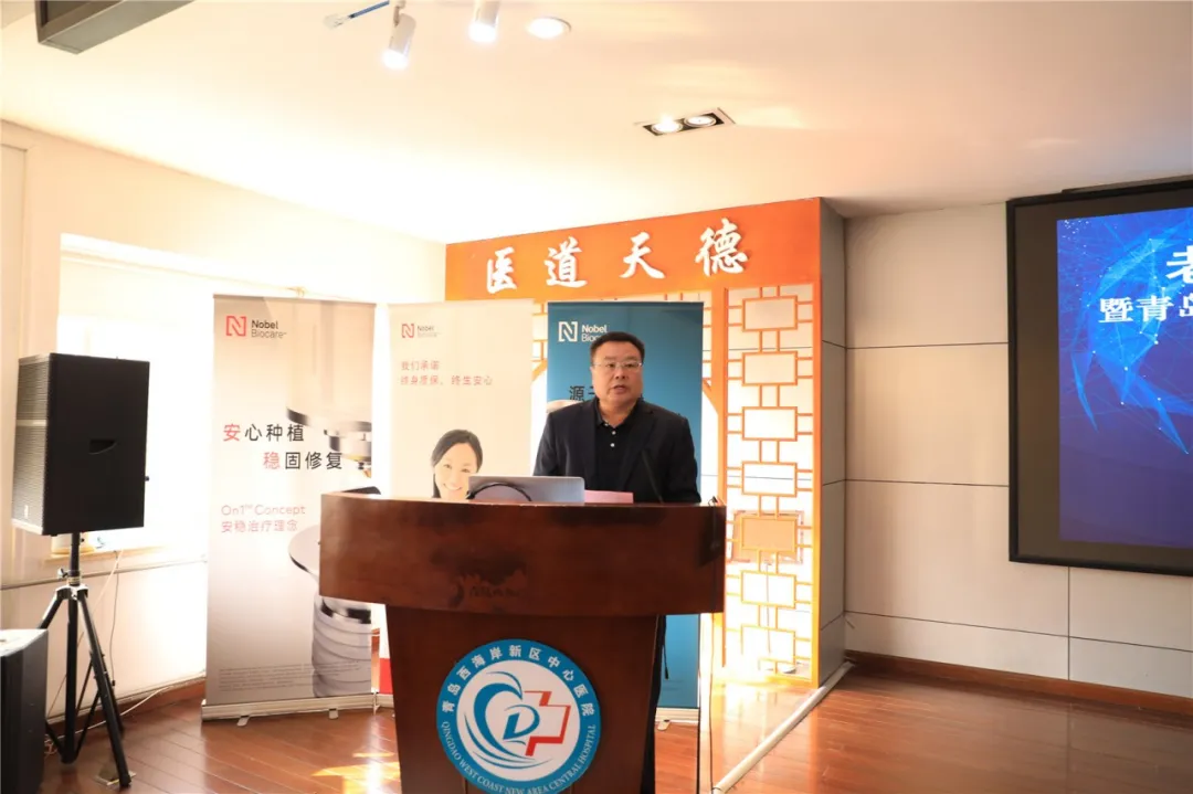 西海岸新区中心医院周雷升副院长致欢迎辞,他肯定了口腔科在近年来取得的成绩,以及口腔科在青岛西海岸新区的学科地位,提出了医院发展的方向,并将为口腔科的可持续发展保驾护航。