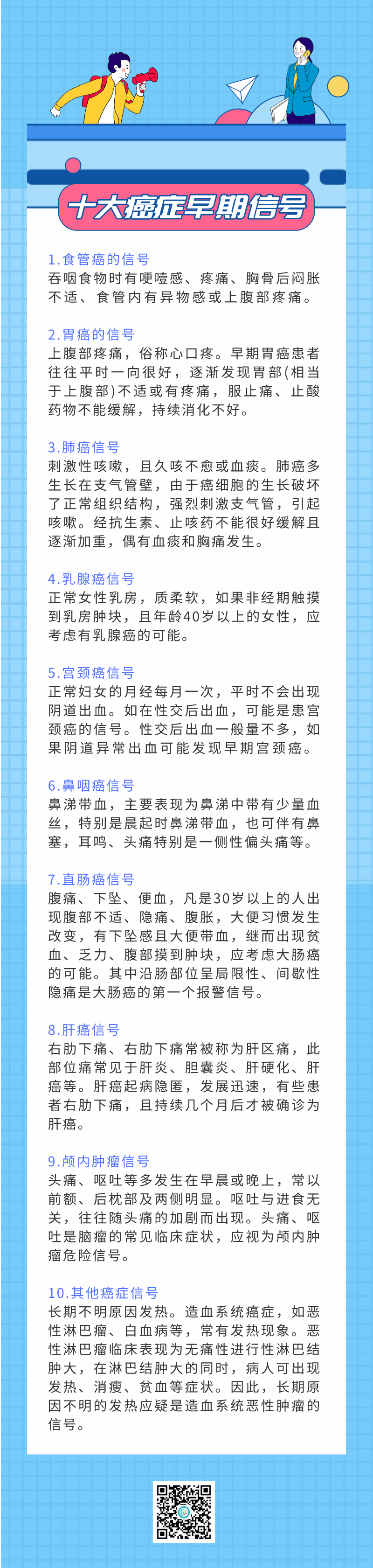 青岛西海岸新区中心医院:日签 | 从头到脚话癌症,解读十大癌症早期信号
