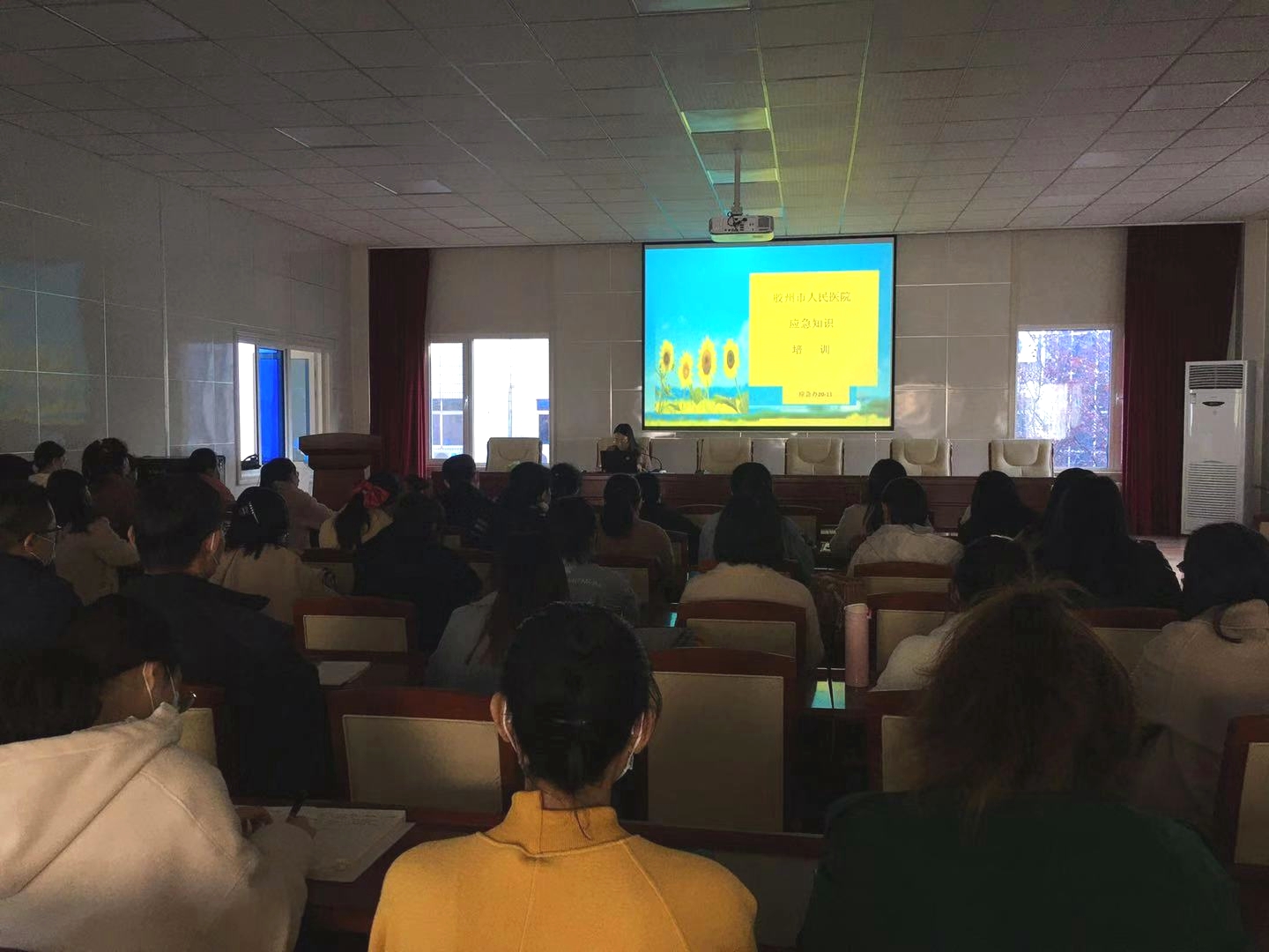 培训在市人民医院北院大会议室进行,在人力资源部的组织下,首先韩松院长对新入职员工进行了动员讲话,对新入职员工表达了祝贺与殷切的希望。接下来由卜婧、宋聪聪、李莹、秦妍妍、李晓华、王勤学、高晓惠分时进行培训,内容涵盖社会医疗保险政策、传染病信息报告和医院秋冬季常态化疫情防控工作方案、医疗机构麻精药品的管理与应用、服务礼仪、爱婴医院标准和母乳喂养的好处、医患沟通与职业道德建设、院感知识与新冠肺炎防控知识、安全生产知识与应急知识。