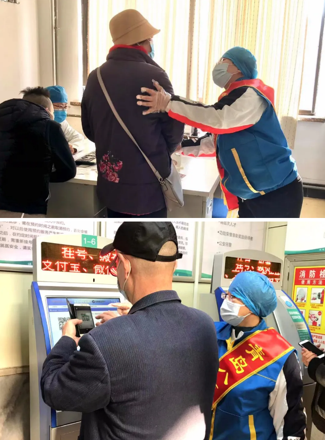 志愿者们利用自己休息的时间,在门诊为患者解决各种疑难问题,利用自己的专业知识为患者进行预检分诊及就诊协助;指导患者使用自助挂号机,协助行动不便的患者就诊,护送患者办理住院手续确保患者的安全。