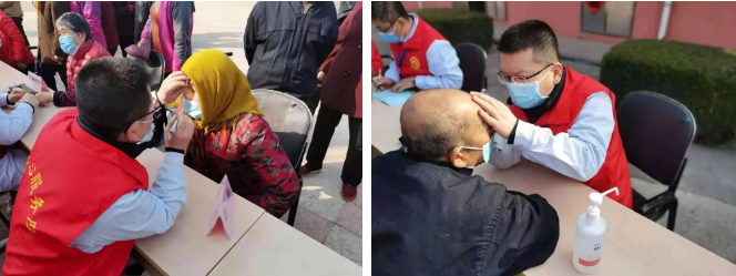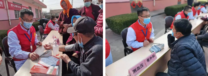 “莲子心”服务队向居民普及养生常识,针对患者提出的咨询问题提出合理的诊疗意见,并为居民进行免费体检,测量血压、血糖,对居民进行饮食、服药等指导。