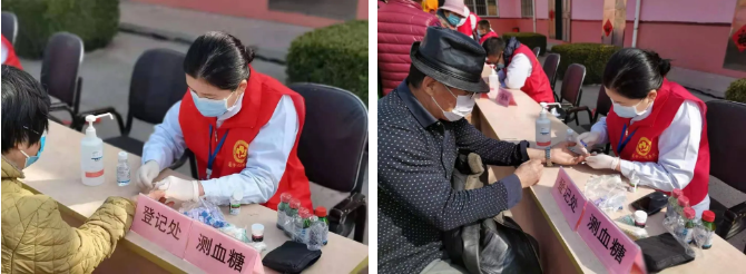 美小护为居民进行血压、血糖检查,