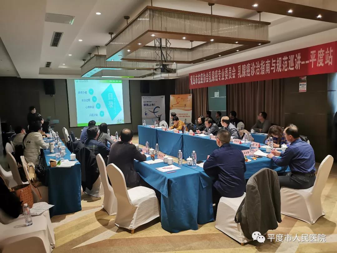 为进一步推动乳腺癌规范化综合治疗,倡导乳腺癌个体治疗理念,更好的提高乳腺癌诊治水平,促进乳腺癌研究领域的交流与合作,由青岛市抗癌协会乳腺癌专业委员会主办,平度市人民医院普一科承办的乳腺癌诊治指南与规范巡讲——平度站胜利召开。