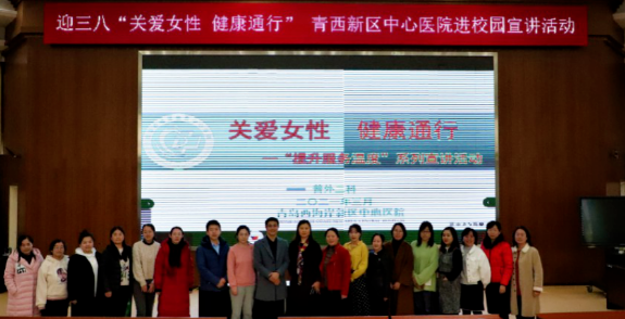 为推动女性健康知识的普及和传播、培养健康管理观念、提高女性健康水平,青岛西海岸新区中心医院以纪念第 111 个“三八”国际劳动妇女节为契机, 普外二科与超声医学科强强联手,应新区多家知名学府、企事业单位邀请,开展形式多样、富有意义的系列公益活动。