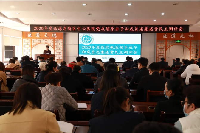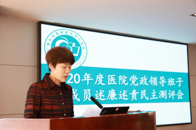 3月4日下午,青岛西海岸新区中心医院按照局机关党委统一部署,召开2020年度党政领导班子及成员述责述廉民主测评会和2020年度专题民主生活会,区卫健局党组成员、副局长、三级调研员周淳莉和基层卫生科主任丁刚出席会议。