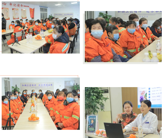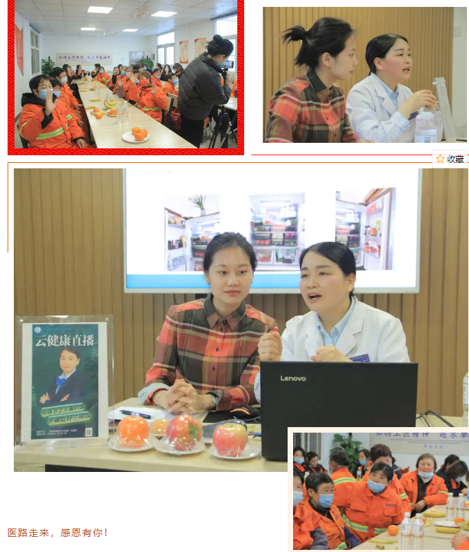 本次“云健康”科普直播讲堂让环卫女工对正确预防职业病引起了重视,明白了每天正确吃好三顿饭的重要性。希望通过此次活动,让环卫工人了解自身的健康状况,达到无病预防,有病早发现、早治疗的目的。