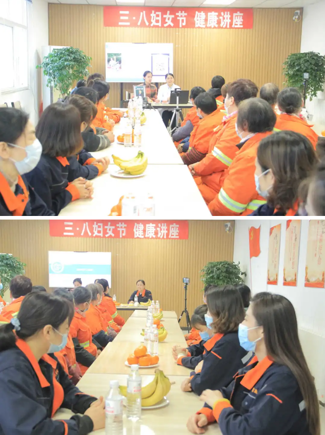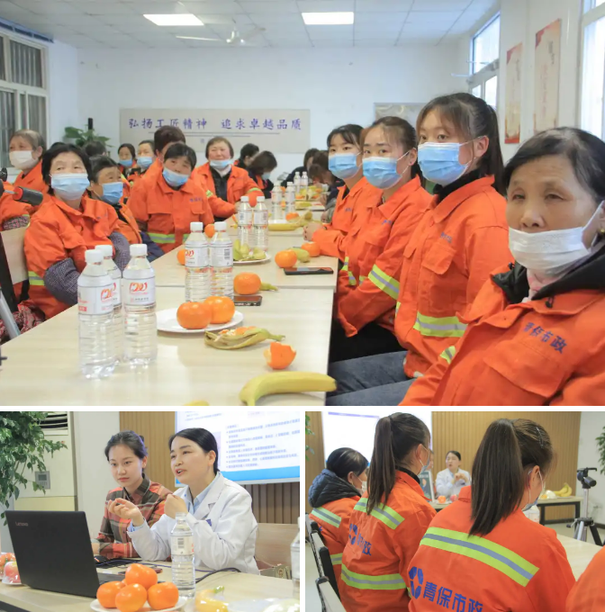 环卫工人每天都在日晒雨淋的环境下工作,很容易患上各种职业病。3月4日下午14点,青岛西海岸新区中心医院营养科副主任王炳莲在线上线下同步开展《如何预防职业病?正确吃好三顿饭》科普讲堂,走近女环卫工人,与大家面对面畅聊营养健康相关知识。