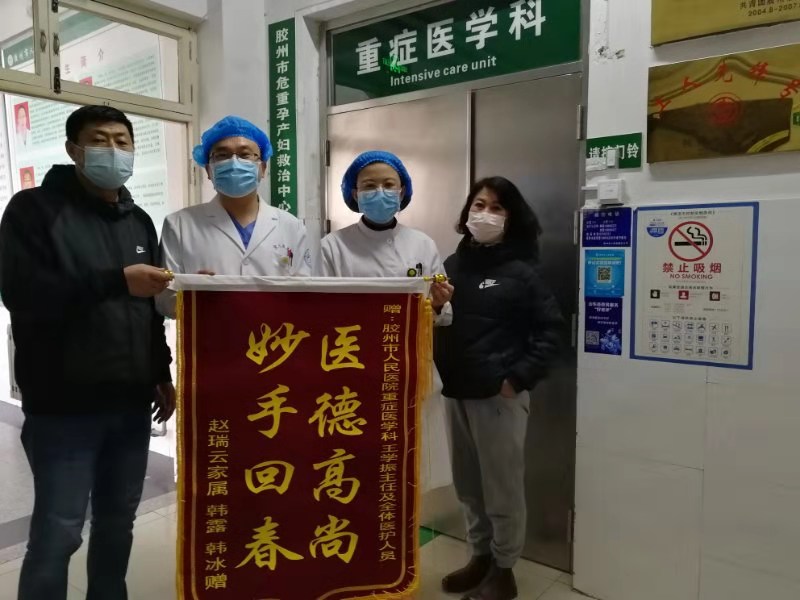 转至我院重症医学科后,在王学振主任及陈琰护士长的共同带领下,科室全体医护人员悉心治疗、给予完善的护理,患者升压药物剂量减少,意识逐渐转清,并逐步完成了呼吸机的撤离,成功将患者从死亡线上拉了回来!在治疗患者的同时,医护人员还非常重视患者的心理护理,即使是中午短暂的休息时间,也不忘记多和患者聊聊天,安慰患者。目前患者基本生命体征平稳,已转至普通病房。患者家属表示非常感谢,并为重症医学科送上了锦旗。