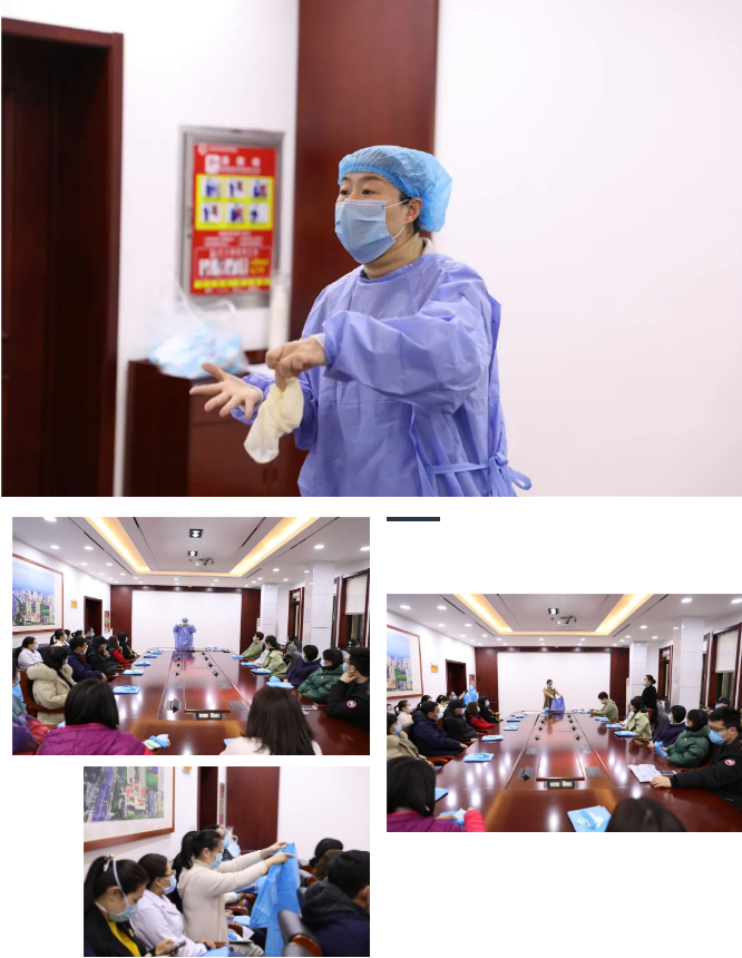 自疫情开始,院感科就派专职人员对医务人员开展防护用品穿脱流程培训,陪着大家一遍遍的熟悉如何合理正确的从清洁区进入污染区的流程;