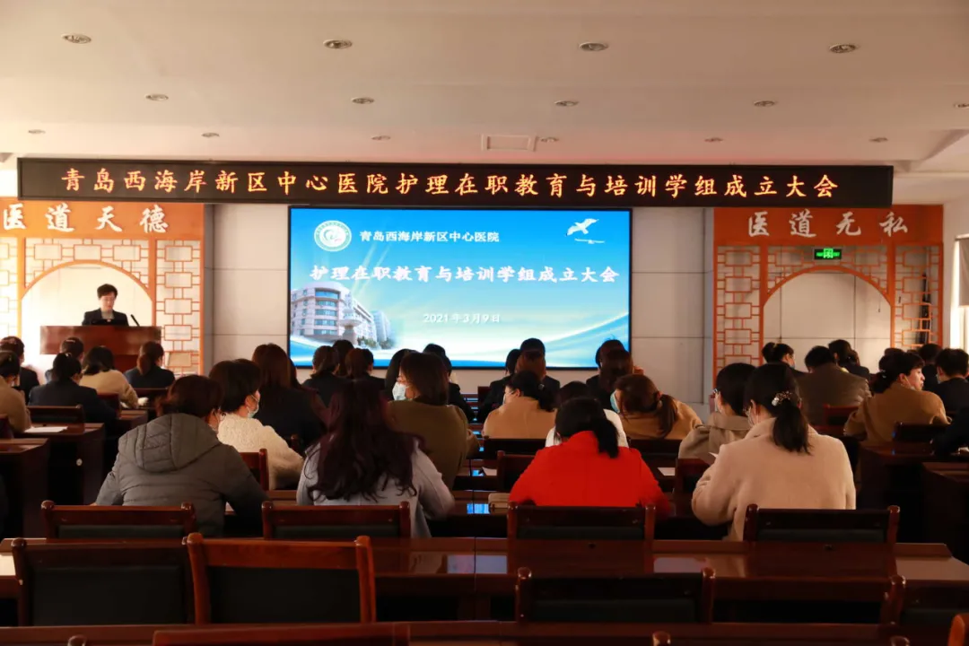 为持续推进青岛西海岸新区中心医院护理在职教育与培训工作,规范各临床科室护理在职教育与培训,提升医院护理人员业务素质与综合水平,巩固护理专业技能,提高护理带教老师组织、授课、技术操作培训能力,统一各科室护理带教的构架与内容,提升规培期护士的基础知识、基本理论和基本技能,更加规范、优质为患者提供护理服务,3月9日下午,青岛西海岸新区中心医院护理在职教育与培训学组成立大会在七号楼四楼会议室隆重召开,医院领导和护理骨干参会。大会由护理部主任杨继芳主持。