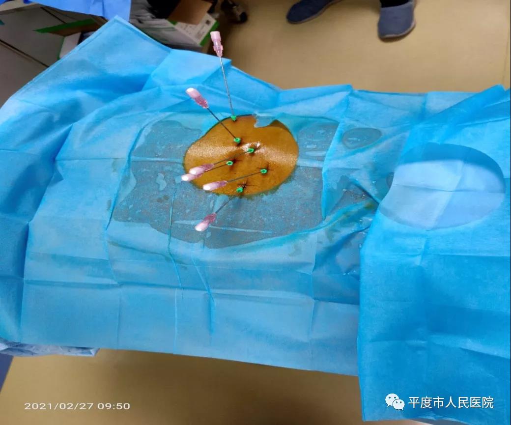 125I粒子植入术是一种新技术,也是一种高精度、高难度手术。我院介入血管外科具有丰富的CT引导的穿刺活检及消融技术的经验,早在2015年即开始筹备开展放射性粒子植入术,专门到各地学习,参加各类粒子培训班,同时我院核医学科也配备各种大型检查设备,为此项技术的顺利开展保驾护航。我院目前已独立完成十余例肝脏恶性肿瘤的125I粒子植入术,此项技术的开展,填补了医院的技术空白,将成为一项极具发展前景的恶性肿瘤的治疗手段。