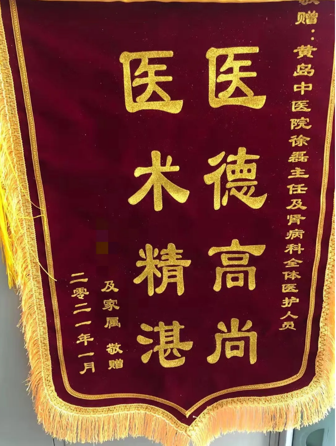 肾病科的医疗技术和温馨服务历来深受广大患者好评,医护人员视患者如亲人,从生活的方方面面为他们着想,体贴入微的温暖着患者的心。近日,患者送来锦旗,感谢徐磊主任和全体医护人员带给他们的健康和感动。
