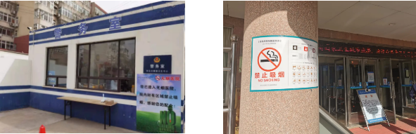 狠抓控烟工作、建设无烟医院。在医院门口、门诊大厅、办公楼等多个位置增设禁烟警示牌。院内保安、志愿者纷纷发挥主人翁意识,积极投身卫生城市复审工作,维持就医秩序,主动上前对吸烟行为及时劝阻,推进无烟医院建设。