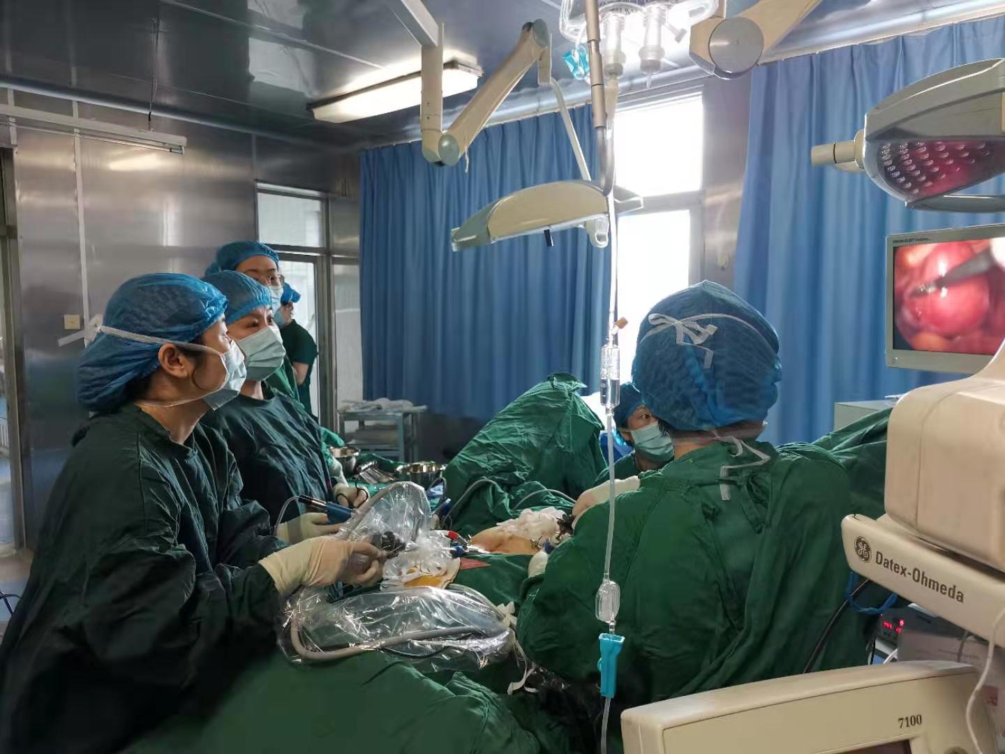 市人民医院妇科在青医附院妇科主任姚勤的指导下,腹腔镜下成功将患者全子宫及双侧输卵管切除,手术完成顺利,术后患者恢复良好,现已康复出院。