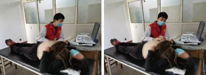 超声医学科郑伟副主任携带便捷式彩超机,为居民进行疾病筛查和健康查体。