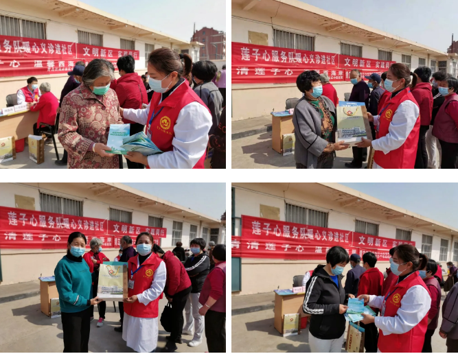 “莲子心”服务队为居民准备了爱心健康大礼包,内附医院门诊咨询电话、就诊预约方式指导、免费中药、降血糖茶叶、健康扇、就医指南等,方便社区居民就医。