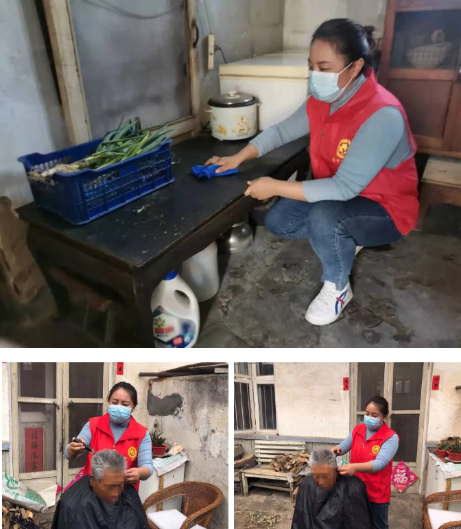 医护人员及共产党员登门看望了困难群众,详细了解他们的身体情况,为他们进行身体检查,制定调养方案,指导科学用药,为他们打扫庭院、清理房屋,并为老人进行暖心义剪。