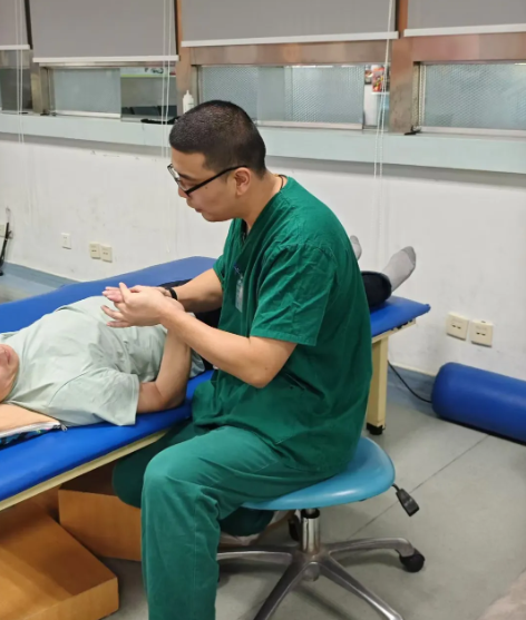 康复医学科主任王素平接诊后,首先组织医师、治疗师、护士对程女士的病情进行了精准的评估,并根据评估结果制定了详细的康复治疗方案。而具体治疗方案的实施,由康复治疗师国成山负责。在接下来的治疗中,国成山利用川平反复促通疗法对程女士的手指及下肢进行促通训练,同时利用Bobath技术调整其下肢的生物力线,收效明显。经过一段时间的治疗,程女士便可以独立步行,并且手指屈伸不利的情况也得到了明显的改善。