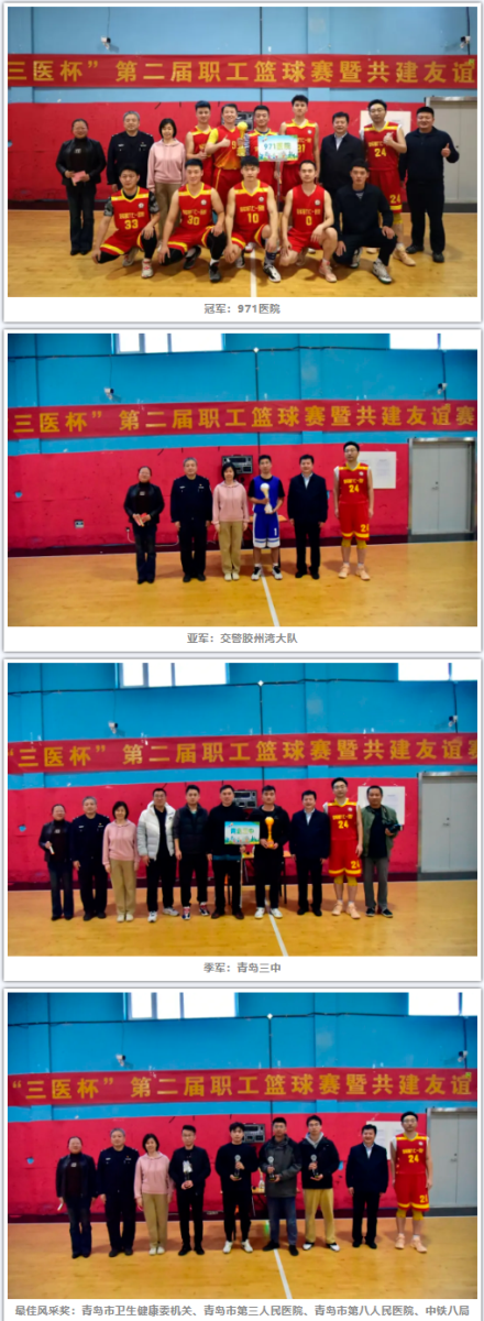 青岛市第三人民医院把医院文化建设与职工文体活动有机结合,积极倡导健康生活方式,为职工营造积极向上的工作环境。以篮会友,共享运动快乐,医院工会将持续为广大篮球爱好者提供一个良好的交流平台。通过体育竞技这一载体,共同构建和谐、健康的医疗环境和社会环境。