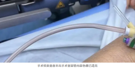 经多学科会诊和充分的术前准备后,青岛市第三人民医院泌尿外科应用医院新引进的蓝激光成功为刘大爷进行经尿道蓝激光前列腺汽化术,手术非常顺利,且仅用20分钟,术中几乎无出血。患者术后恢复良好,留置尿管内尿色清亮,术后72小时拔出尿管,排尿通畅,彻底解决了之前的困扰。