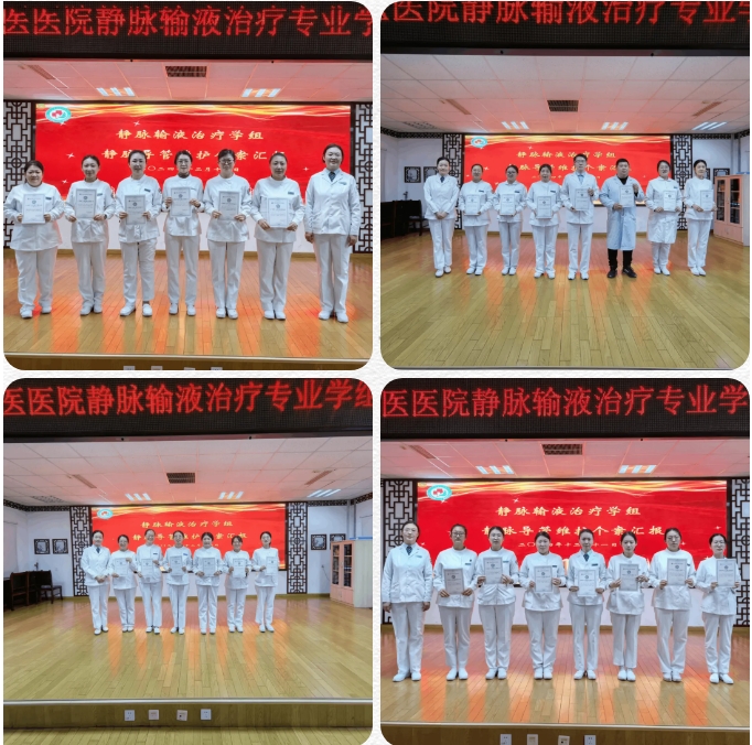 在院党委的坚强领导与大力支持下,近年来静脉输液治疗学组喜报频传,连续三年蝉联山东省护理比赛一等奖。2024年7月份在第六届山东省静脉治疗大会中的“山东省护理学会静脉治疗科普案例分享会”中,静疗团队荣获一等奖。在今年12月份青岛市护理学会举办的静脉导管维护师资培训班中,学组组长相雪华和副组长王楠楠受邀为参会人员现场培训静脉导管维护操作并担任考核评委。在静脉导管维护案例展示中PICC专科护士管雪涵荣获二等奖;尹艳萍、王楠楠、齐雪丽经过理论与技能考核取得青岛市静脉导管维护师资资格证书。