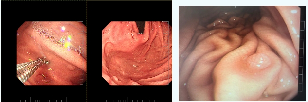 大于1厘米的息肉和有蒂息肉具有恶性转化及出血风险,建议镜下切除,较小病变可用活检钳取样,并对背景黏膜活检。因其与幽门螺旋杆菌感染密切相关,患者应积极完善13C或14C呼气试验,并积极除菌治疗。
