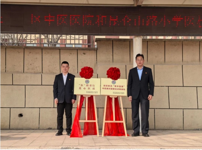 区中医医院纪委书记陈维东与青岛西海岸新区昆仑山路小学校长徐彦滨共同为《莲心医站》《医校联合“草木皆美”中医惠民健康流动加油站》揭牌,为持续开展丰富多样的健康活动搭建了平台。