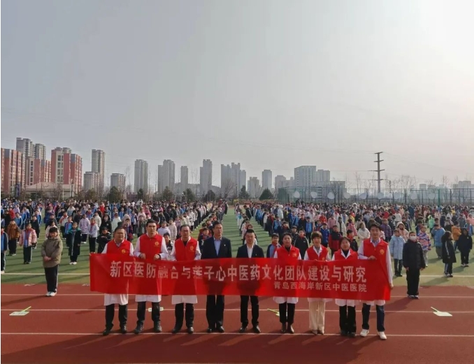 区中医医院莲子心志愿服务队队员带领全校师生练习中医养生功法八段锦。师生感受中医传统养生运动的魅力,通过一招一式的练习,达到强身健体、调节身心的目的,同时增进了对中医药文化的认识。