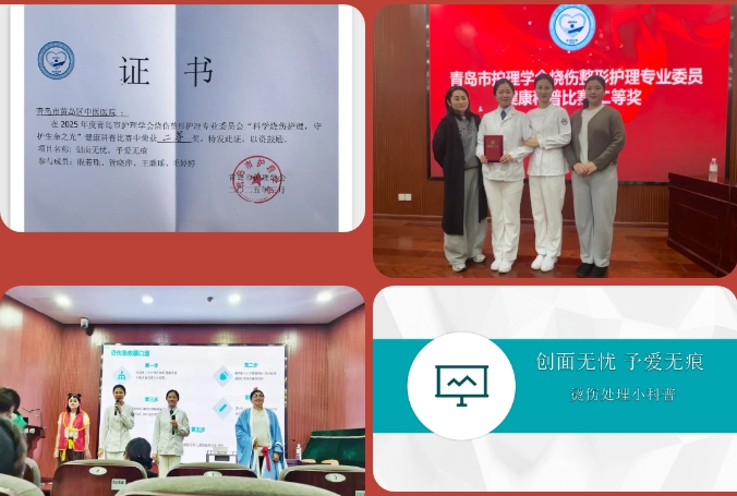 2025年3月13日,青岛市护理学会烧伤整形护理专业委员会“科学烧伤护理,守护生命之光”健康科普比赛圆满落幕。青岛西海岸新区中医医院外一科管晓萍护士长带领的参赛队伍以声情并茂的演讲解说、妙趣横生的情景演绎等多元化形式,通过与当下“哪吒”“太乙真人”等热点电影人物融合,将烧伤知识以通俗易懂的形式融会贯通成参赛科普作品,成功斩获团体二等奖!