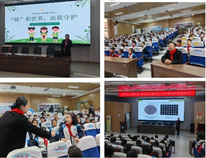 3月4日,眼、耳鼻咽喉科护士长管泽芳在青岛西海岸新区港头小学为广大师生带来题为《“睛”彩世界,由我守护》的青少年近视防控科普讲座,从近视形成的原因、近视产生的危害、如何预防近视及有效保护眼睛的方法等方面向师生们传递了近视防控相关知识。同学们聚精会神听课,互动环节纷纷举手提问,管泽芳护士长耐心为同学们答疑解惑。