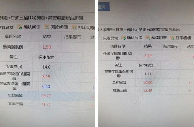 禁饮食、胃肠减压、抗炎、生长抑素抑酶、心电监护……经过及时有效的治疗,裴先生的甘油三脂由开始的71.31mmol/L,几天后降至12.49mmol/L,病情也慢慢得到缓解,主管医生李友西说,这应该是他从医以来,见过的最高血脂指数了。