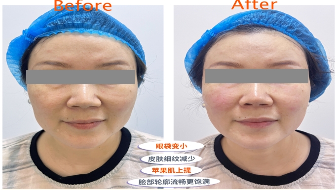 2、面部抗衰:下颌线不清晰,松弛下垂,苹果肌下移。