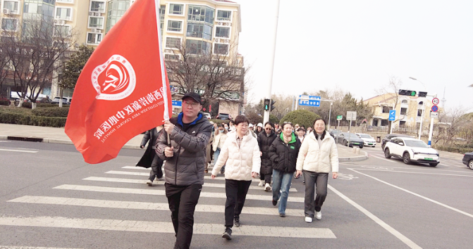 为庆祝三八妇女节,丰富女职工的文化生活,深入倡导绿色、低碳出行,展示女职工健康向上的精神风貌,3月6日下午,在“三八”国际劳动妇女节到来之际,青岛西海岸新区中心医院妇委会组织医院共计112名女职工开展了以促进身心健康为目的“健步行”活动。出发前工会主席李荣、妇委会主任王宗娥为大家送上了节日的祝福!大家高喊“三月春风伴我行,巾帼健步绽芳华”出发。