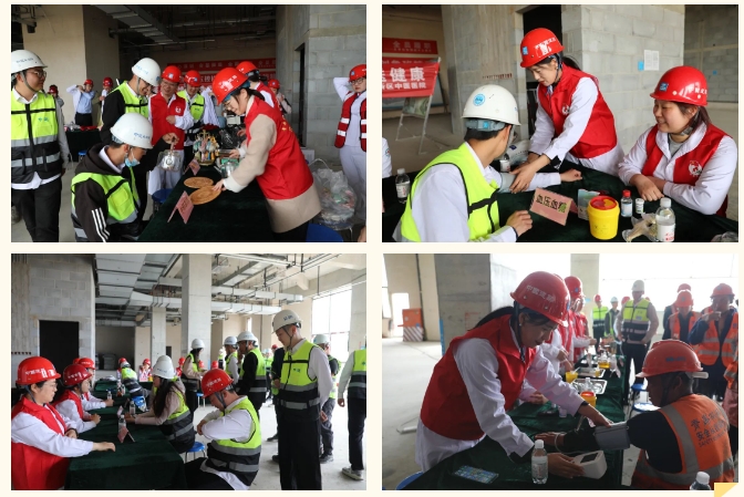 座谈会结束后,医护专家在新院区建设现场开展健康义诊,根据建筑工人的工作特点,提供了包括中医、外科、骨科、眼科、中医护理等多个科室的专业诊疗服务。